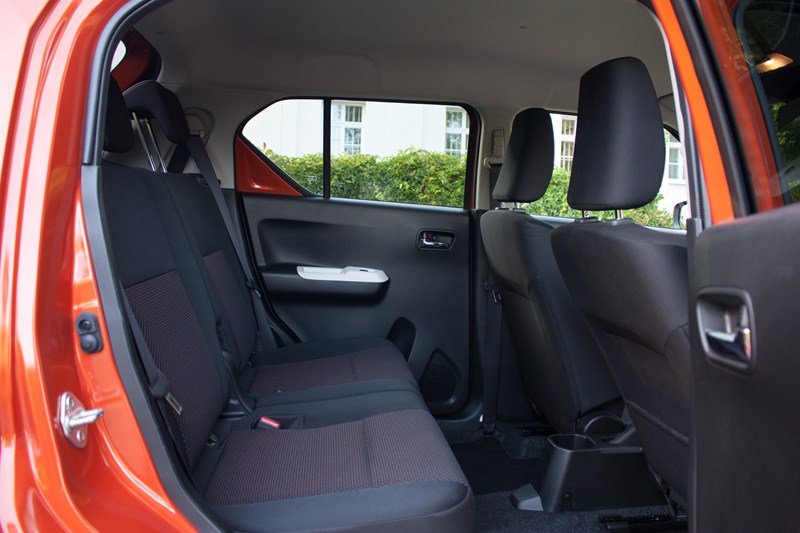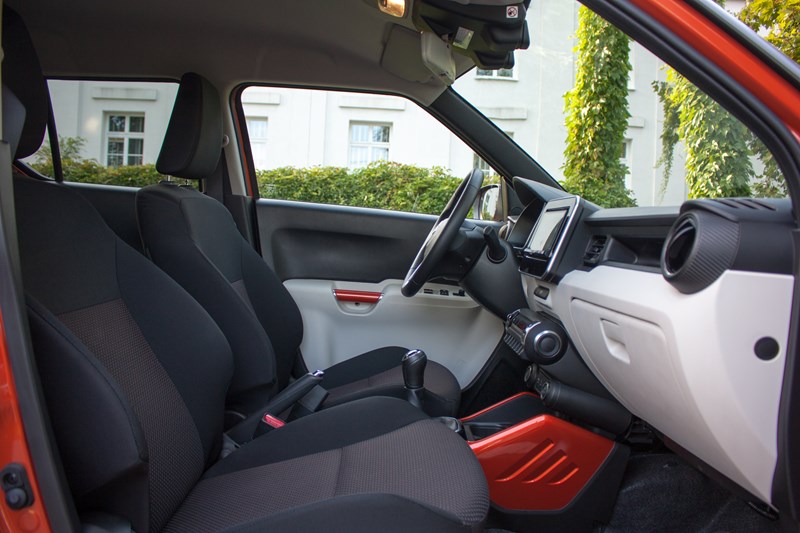 Suzuki Ignis zaskakuje ilością miejsca we wnętrzu. W czasie naszego testu bez problemów mieściły się w nim cztery dorosłe osoby mające około 180 centymetrów wzrostu. Testowany przez nas egzemplarz to wersja czteroosobowa, która według nas jest najlepszym wyborem. Wówczas z tyłu mamy dwa oddzielne i szerokie siedziska, które możemy przesuwać, dzięki czemu można zwiększyć przestrzeń bagażową.