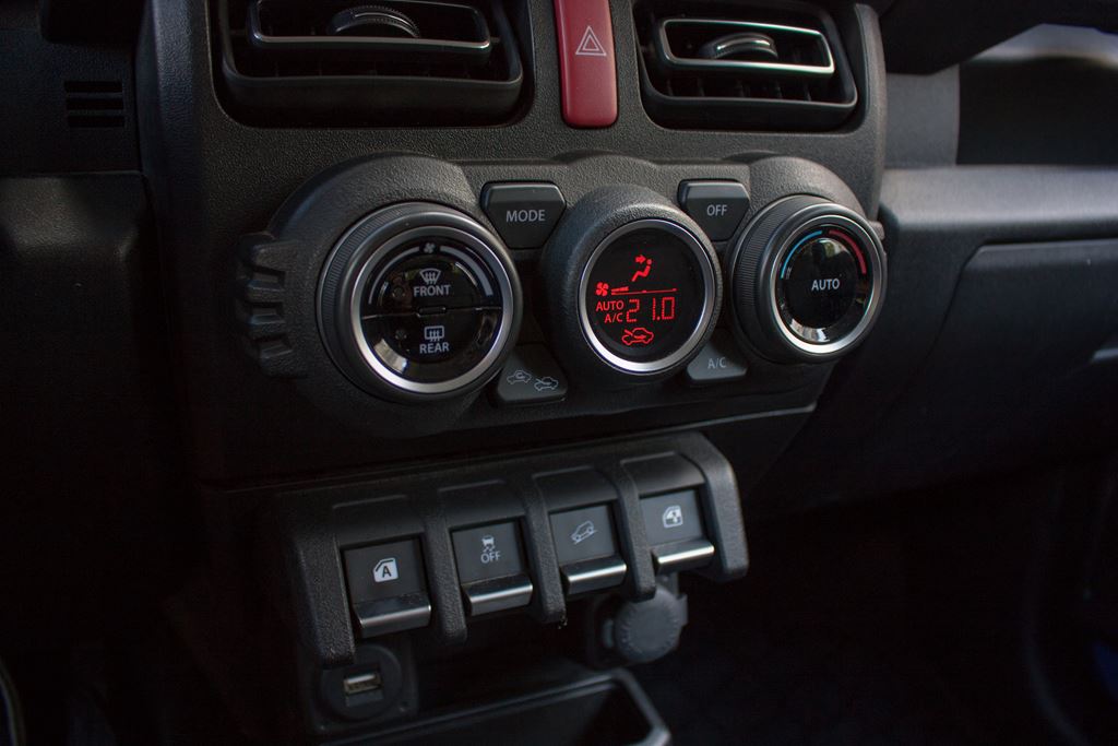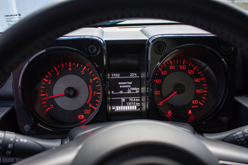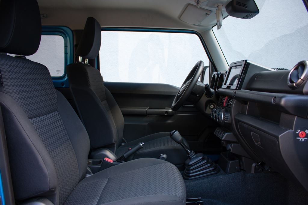 Pomimo tego, że Suzuki Jimny to samochód do pracy w ciężkich warunkach jest on naprawdę dobrze wyposażony. Już w podstawowej wersji wyposażenia na pokładzie małej terenówki znajdziemy m.in. wielofunkcyjną kierownicę, manualną klimatyzację, radio z Bluetooth, tempomat, mechanizm ułatwiający zajmowanie miejsc na tylnych siedzeniach czy komputer pokładowy. Do tego dochodzi mnóstwo systemów bezpieczeństwa takich jak m.in. system ABD + EBD, ESP z kontrolą trakcji, układ reagowania przedkolizyjnego z kamerą monoskopową i czujnikiem laserowym, alarm opuszczenia pasa ruchu, ostrzeżenie o niekontrolowanym zygzakowaniu pojazdu, system ostrzegania o awaryjnym hamowaniu, wspomaganie ruszania na wzniesieniu czy wspomaganie zjazdu ze wzniesienia.