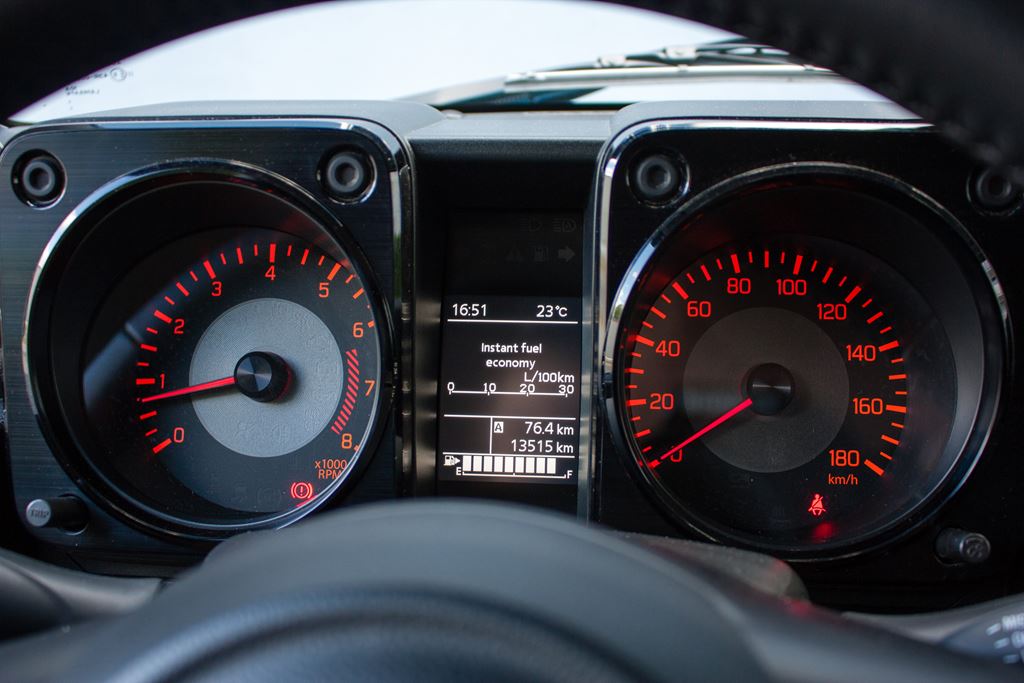 Pod maskę terenówki trafił nowy, aczkolwiek sprawdzony już w Azji, wolnossący silnik benzynowy o pojemności 1.5 litra, który osiąga moc 102 koni mechanicznych i maksymalny moment obrotowy 130 Nm. To jedyna jednostka napędowa dostępna w Suzuki Jimny. Do wyboru pozostaje tylko skrzynia biegów – pięciobiegowy manual lub czterostopniowy automat. Do naszego testu otrzymaliśmy wersję z manualną skrzynią biegów, której przełożenia są krótkie a to sprawia, że autko pomimo nie najmocniejszego silnika jest wystarczająco dynamiczne. Co prawda w trasie przydałby się jeszcze jeden bieg, żeby nieco zniwelować hałas, ale z drugiej strony to i tak w czasie szybszej jazdy szumy powietrza są już na tyle wyraźne, że lepiej nie przekraczać 80 – 90 km/h.