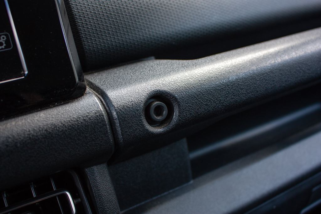 Jeśli chodzi o materiały wykorzystane do wykończenia wnętrza to tutaj także nie powinno być żadnego zaskoczenia. Mamy tutaj do czynienia z samymi twardymi tworzywami, które nie odbijają promieni słonecznych i z pewnością wytrzymają wiele lat w ciężkich warunkach. Wystarczy przetrzeć je mokrą szmatką i znowu wyglądają jak nowe, chociaż jeśli rozpatrywalibyśmy je w kategoriach miejskiego samochodu kosztującego w okolicach stu tysięcy złotych to musielibyśmy bardzo ponarzekać na ich jakość. Dobrą wiadomością jest to, że wszystko zostało tutaj starannie spasowane, więc nawet w ciężkim terenie we wnętrzu nie słychać skrzypienia ani trzeszczenia.