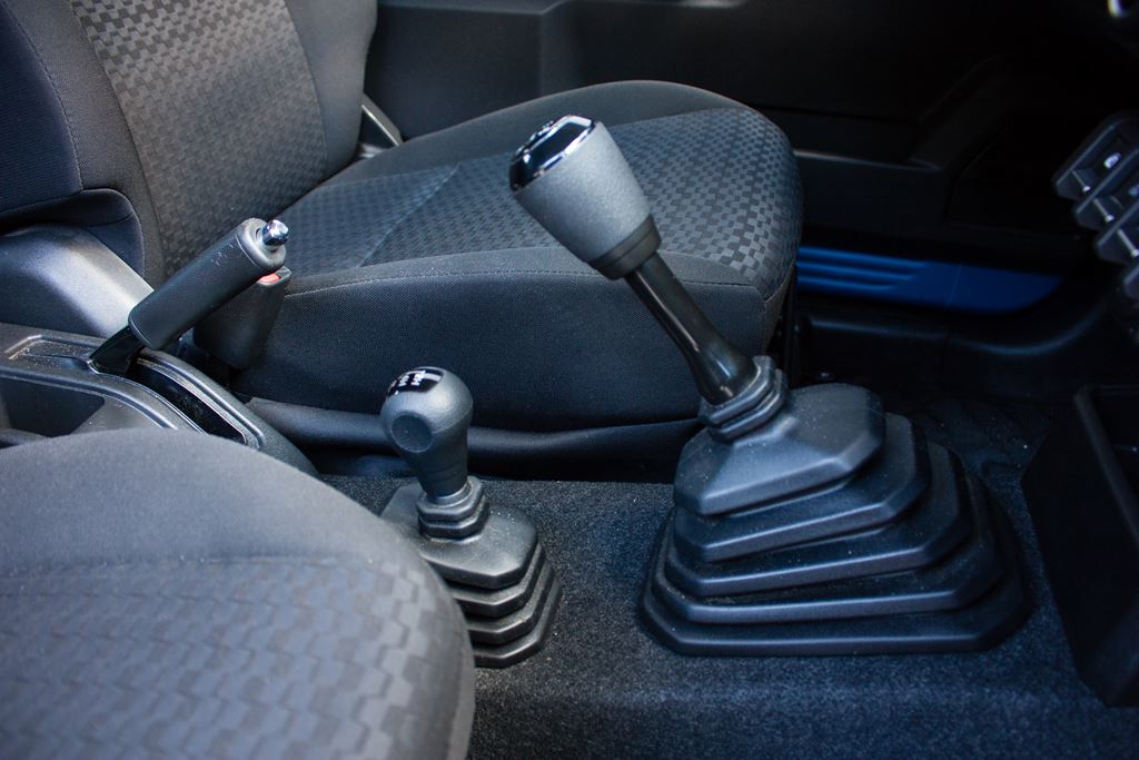 Do wyboru są trzy tryby, które można przełączać tradycyjną dźwignią a nie tak jak ma to miejsce w nowoczesnych samochodach, przy pomocy pokrętła. Normalnie napęd przenoszony jest tylko na tylną oś, natomiast w warunkach pogorszonej przyczepności można skorzystać z napędu 4H, który poradzi sobie nawet w naprawdę trudnych sytuacjach. Jeśli potrzebujemy wybrać się w ekstremalny teren to pozostaje nam jeszcze napęd 4L (z reduktorem), który sprawia, że Jimny staje się praktycznie niezwyciężony.