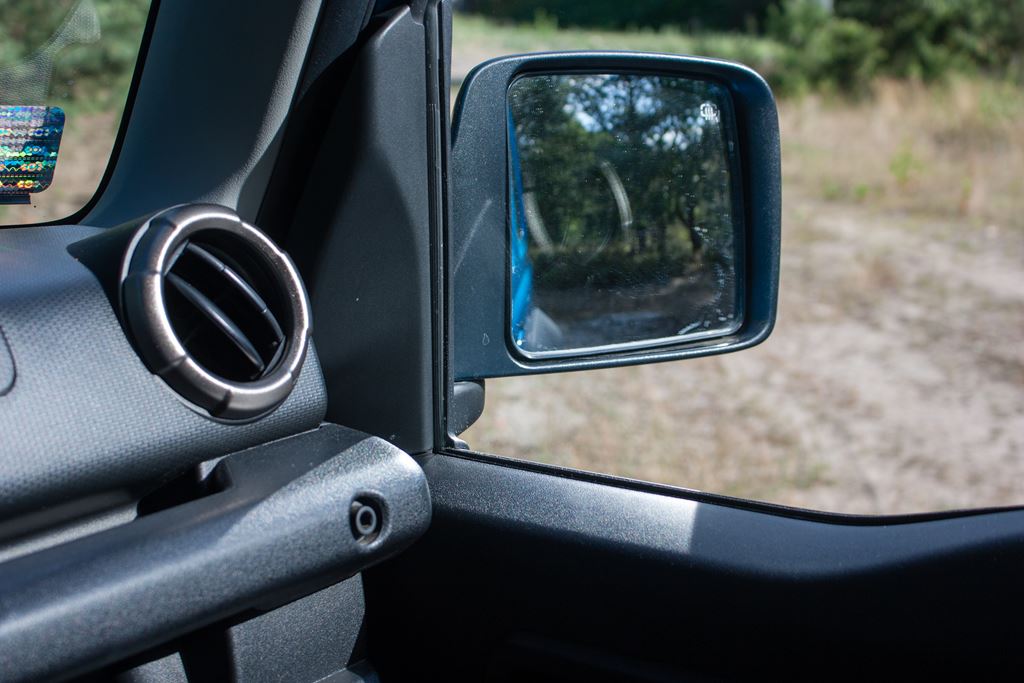 Tutaj wszystko jest podyktowane jeździe terenowej. Prawie pionowo umieszczona przednia szyba ogranicza ilość wpadających promieni słonecznych, nieco niżej poprowadzona linia okien tuż przed przednimi lusterkami umożliwia sprawdzenie co dzieje się z przednimi kołami, natomiast duże lusterka boczne zapewniają znakomitą widoczność.