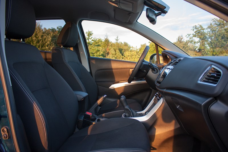 Dokładnie to samo można powiedzieć o kabinie pasażerskiej, która jest przestronna, prosta i wykonana z nienajlepszej jakości materiałów. A szkoda, bo ergonomia jest świetna, ale dobre wrażenie psują zbyt twarde elementy. Na szczęście zostały one dobrze spasowane i nie wydają niepożądanych odgłosów. Z drugiej strony twarde materiały cechują się zdecydowanie lepszą trwałością i odpornością na uszkodzenia, a już kilkukrotnie mieliśmy okazję jeździć Suzuki z przebiegiem ponad 25.000 kilometrów i wszystko wyglądało jakbyśmy wsiedli do niego jako pierwsi.